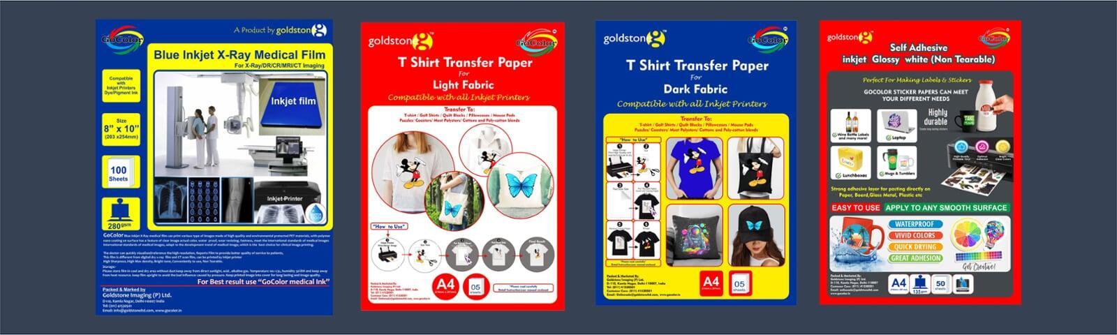 We are in Inkjet Photo Glossy & Matte Paper / Inkjet Inks / CISS / Cartridges / T shirt Transfer Paper / Inkjet Self Adhesive Photo Glossy Paper & Film / Dual side Printable Photo Paper Glossy & Matte / Dye Sublimation Ink & Paper / INKJET MEDICAL BLUE & WHITE FILMS / Medical Film printing Ink